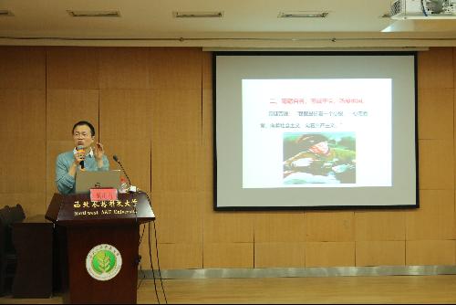 胡庆有老师首先揭示了雷锋精神的涵义:雷锋精神蕴含着对国家的深爱——一心向党,坚定不移的支持和践行着社会主义道路;也有对人民的热爱——毫不利己,全心全意为人民奉献,把有限的生命投入到无限的为人民服务当中;以及对事业的敬爱——甘愿做一颗螺丝钉,干一行爱一行,对待工作像夏天一样火热。除此之外,雷锋精神还体现着严于律己的人生态度,正如雷锋同志提到过的:“对待缺点要像秋风扫落叶一样”。胡庆有老师的解读,让同学们对雷锋精神有了更深更全面的理解,更引起了同学们心灵的共鸣。