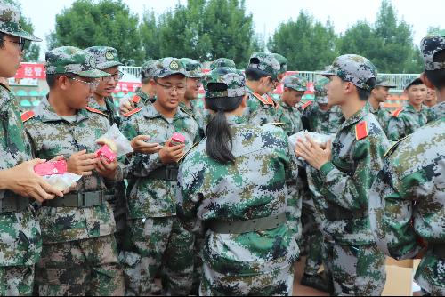 同学们对院级领导的探望表示出了极大的热情,在认真聆听完领导们的寄语后,他们还收到了来自领导的慰问品,他们被晒通红的脸蛋上浮现出感动而温暖的表情。他们说:“军训中有教官、老师和学长学姐们的陪伴,现在还有领导来关心我们,我们很开心,我们一定会坚持训练的。”